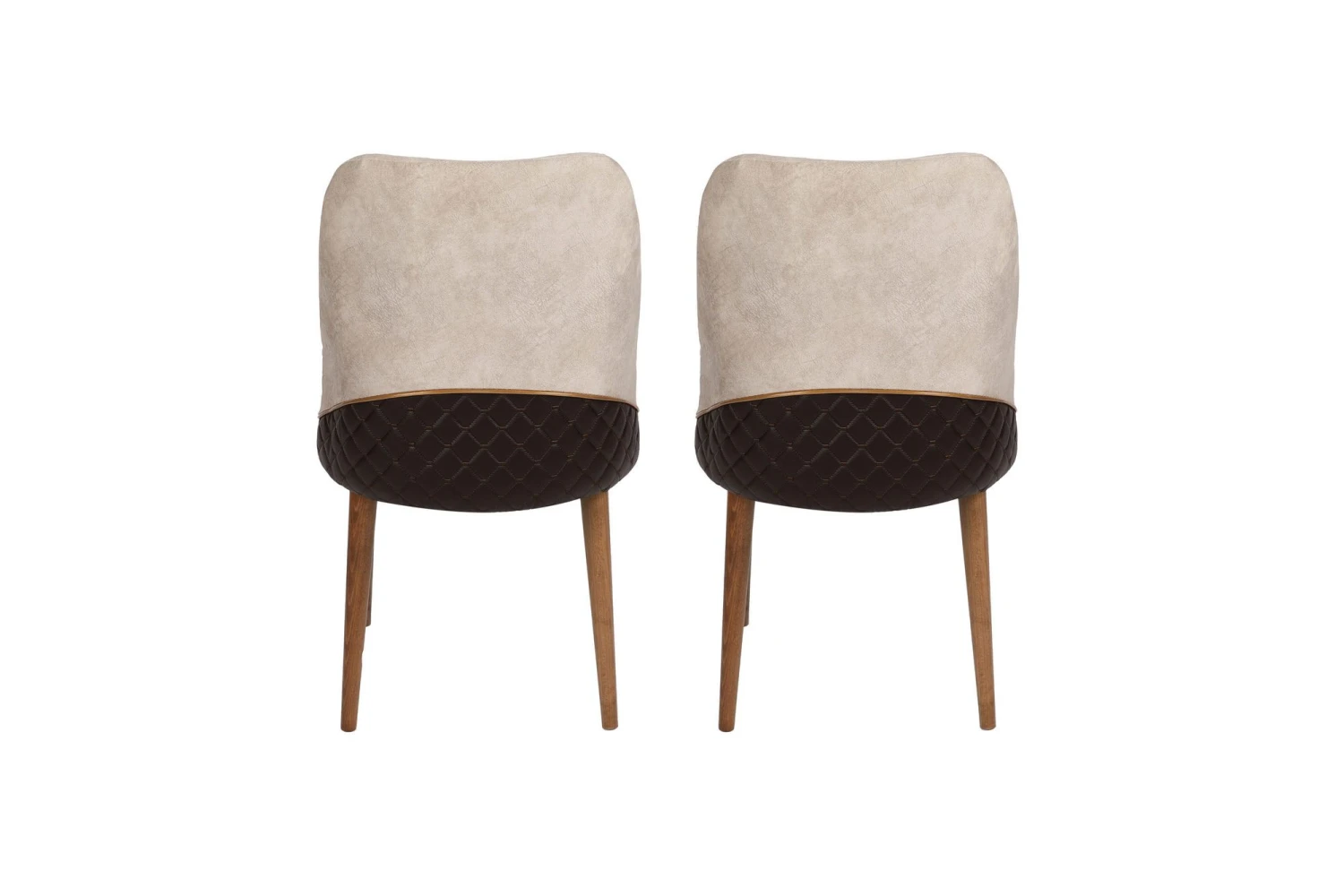 Vella Stoel Set: Metalen Frame, Fluwelen Zitting | Crème Walnoot