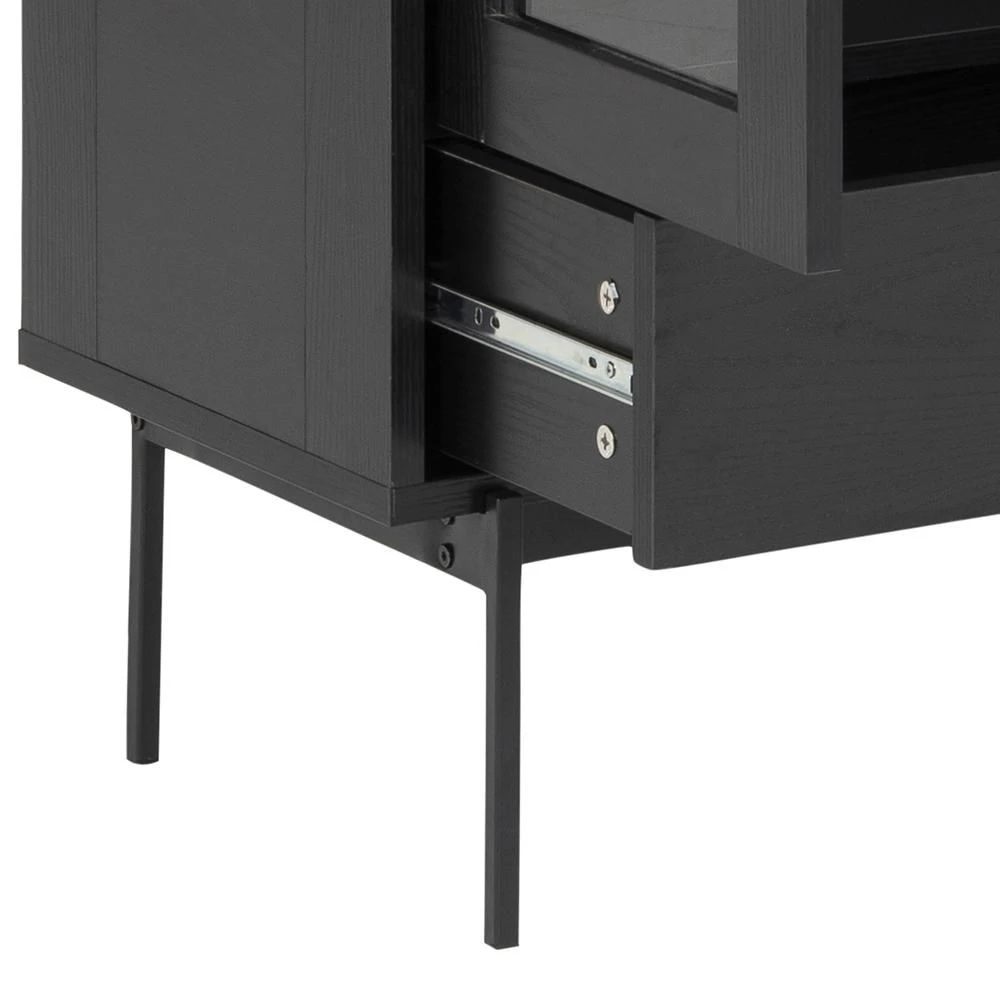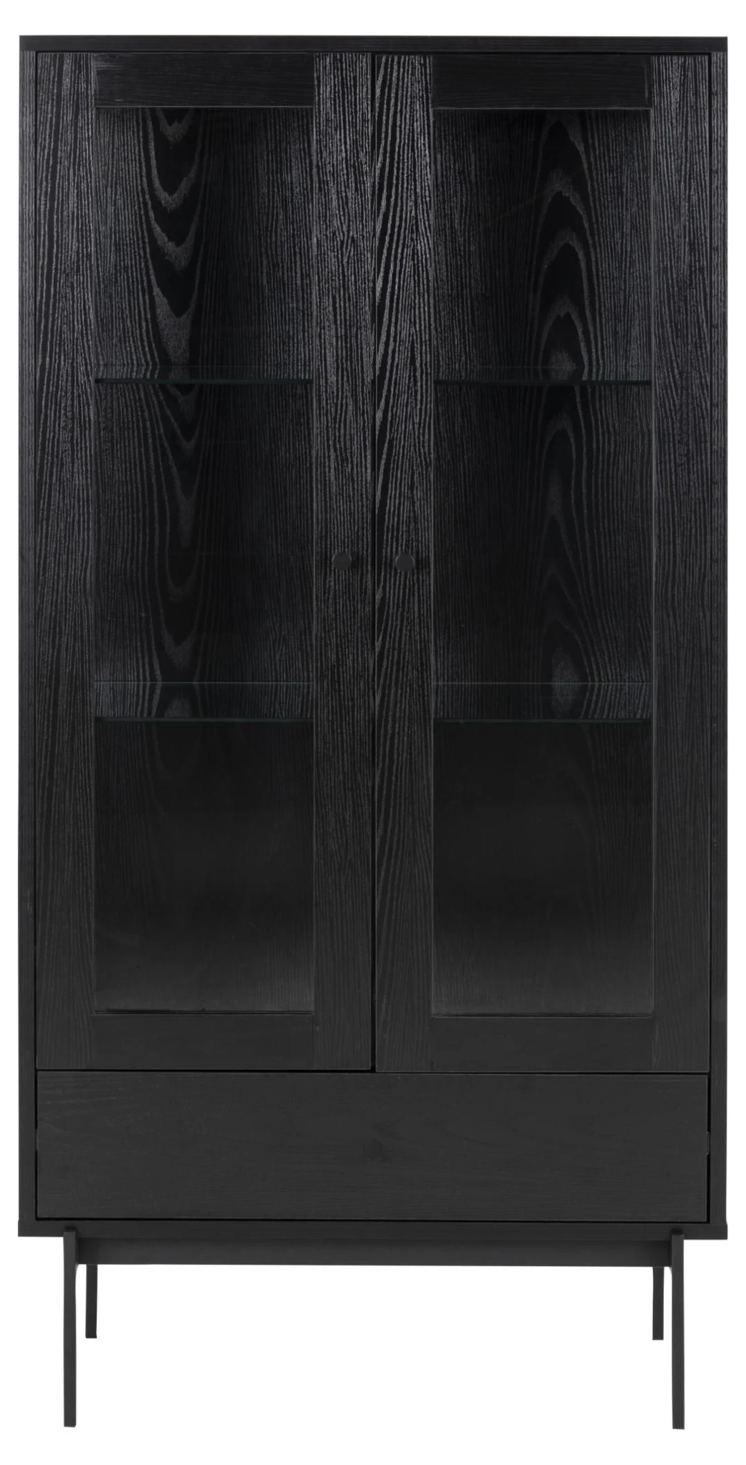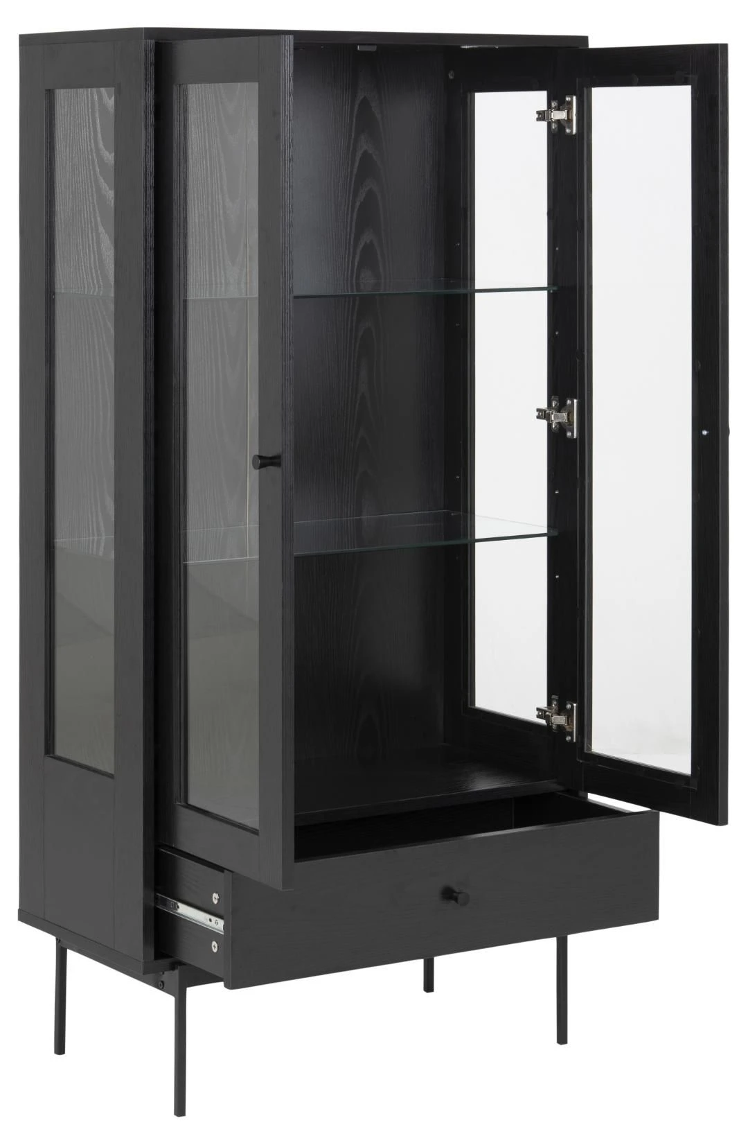 Iedereen heeft wel spulletjes waarvan hij of zij vindt dat het zonde is om ze in een donkere kast te verstoppen. Met vitrinekast Angus krijg je de kans om deze spullen de aandacht te geven die ze verdienen. De kast is namelijk uitgerust met 2 transparante, glazen deuren. In de kast zelf zijn er 2 glazen legplanken voorzien waar je je spullen veilig op kunt zetten. Voor spullen die niet per se zichtbaar moeten zijn, is er aan de onderkant van de kast een lade voorzien. De deuren en de lade zijn gemaakt uit MDF en afgewerkt met een laagje melamine in esdecor.Â