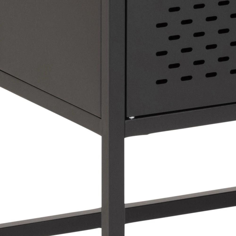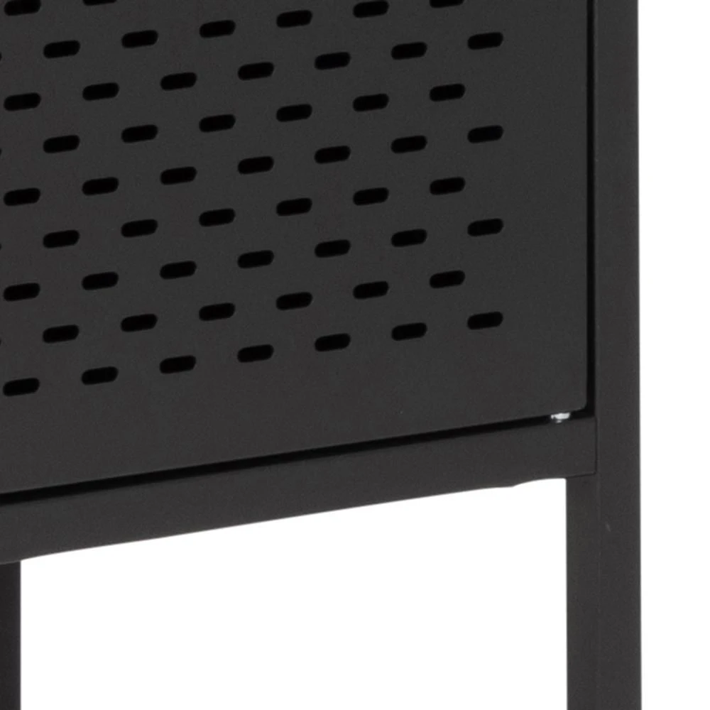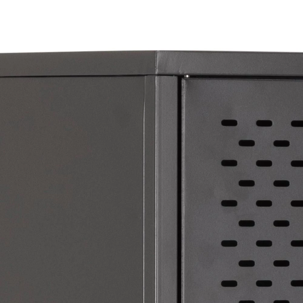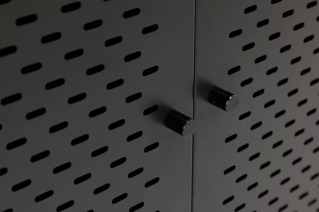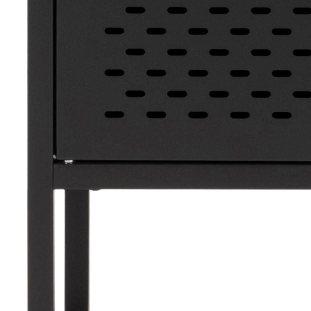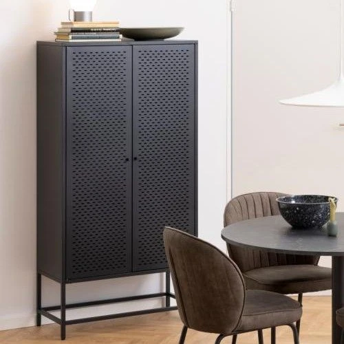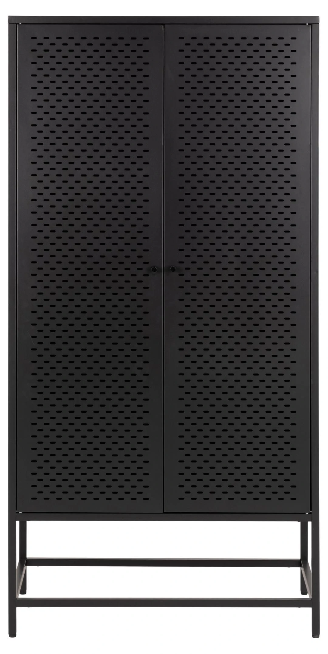 Breng een industriële sfeer in uw huis met deze metalen kast Nebas. Het metaal met poedercoating geeft de ruimte een moderne uitstraling en de geperforeerde deuren maken de industriële look compleet. Gebruik de kast als een coole manier om uw ruimte te upgraden en tegelijkertijd wat praktische opbergruimte te verkrijgen door de 2 stevige legplanken binnenin.Â