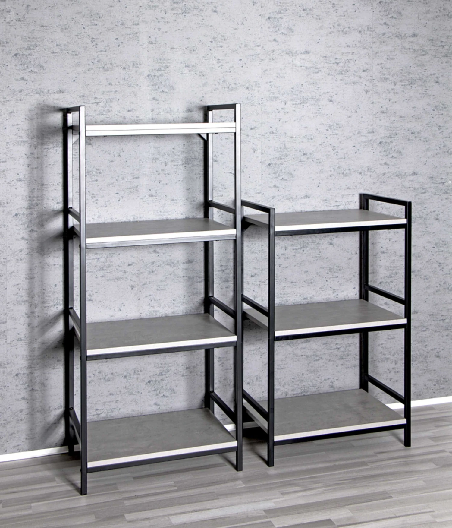 Wandrek Dukan in zwart en betonlook, uitgerust met 4 legplanken.Â