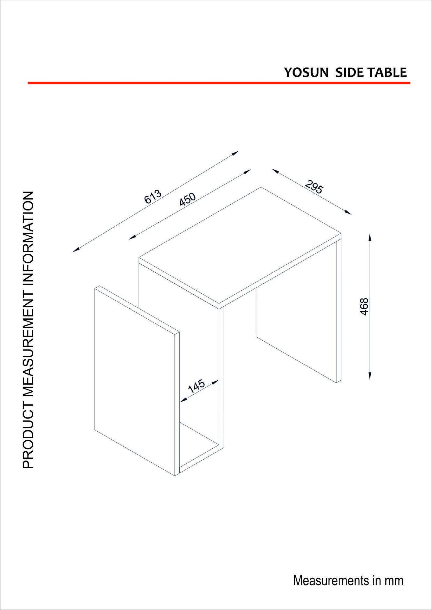 Tera Home Bijzettafel is een veelzijdig meubelstuk gemaakt van 100% gemelamineerd spaanplaat met een dikte van 18mm. Het heeft een totale breedte van 61 en wordt geleverd in een strakke witte kleur.