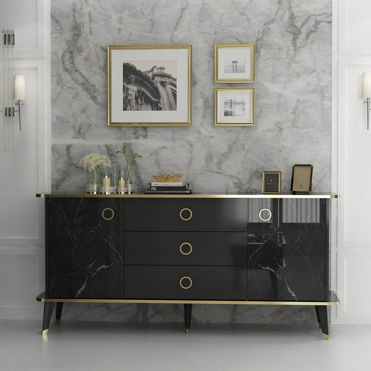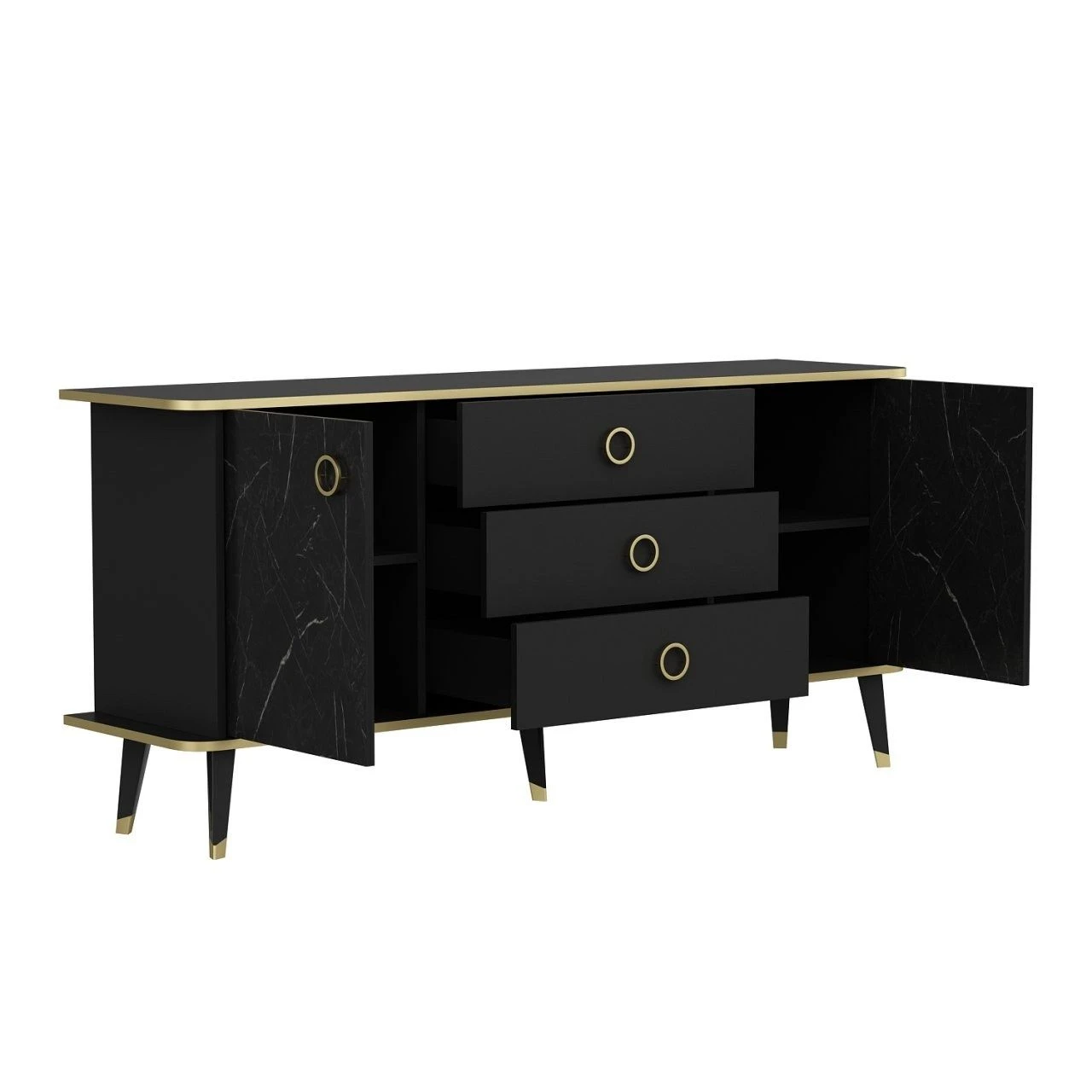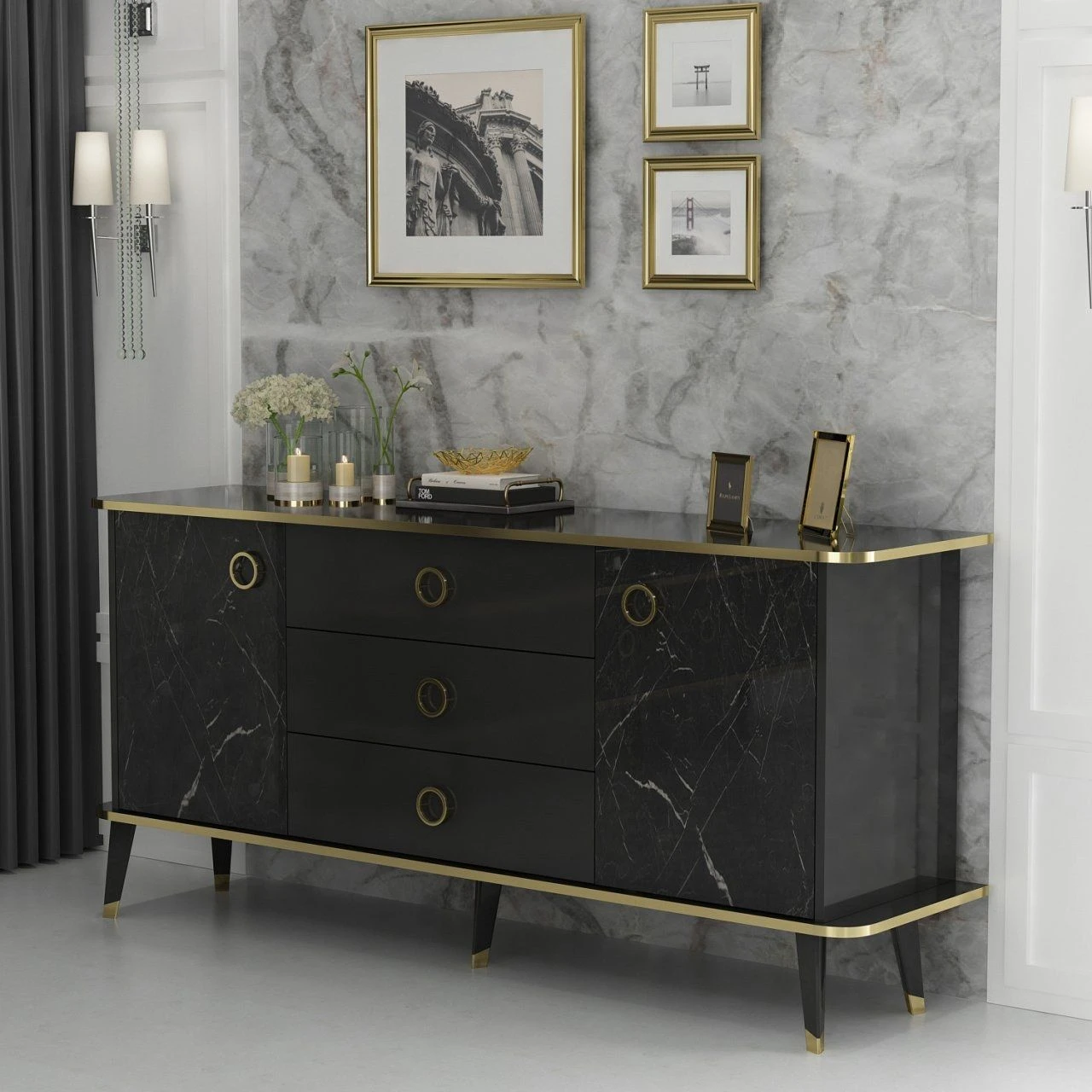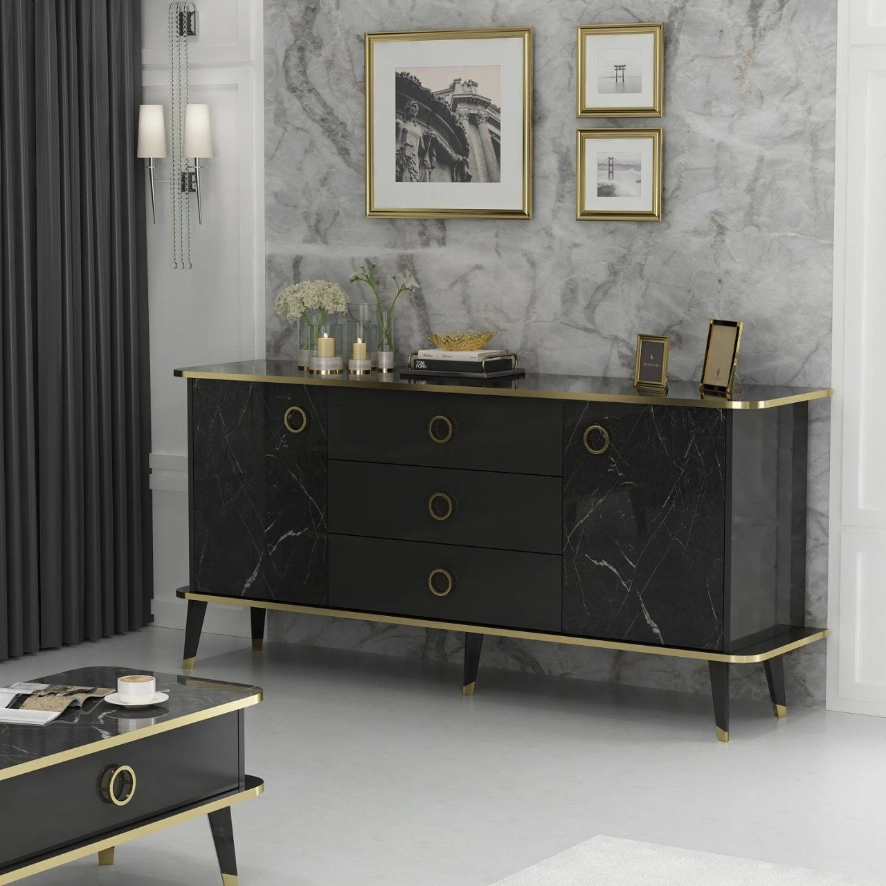 Met zijn opvallende Black Gold kleur past deze console moeiteloos bij elke interieurstijl en voegt hij een elegante touch toe aan je ruimte. Of je nu een moderne of traditionele esthetiek hebt, dit veelzijdige meubelstuk past er naadloos bij en verbetert de algehele sfeer.