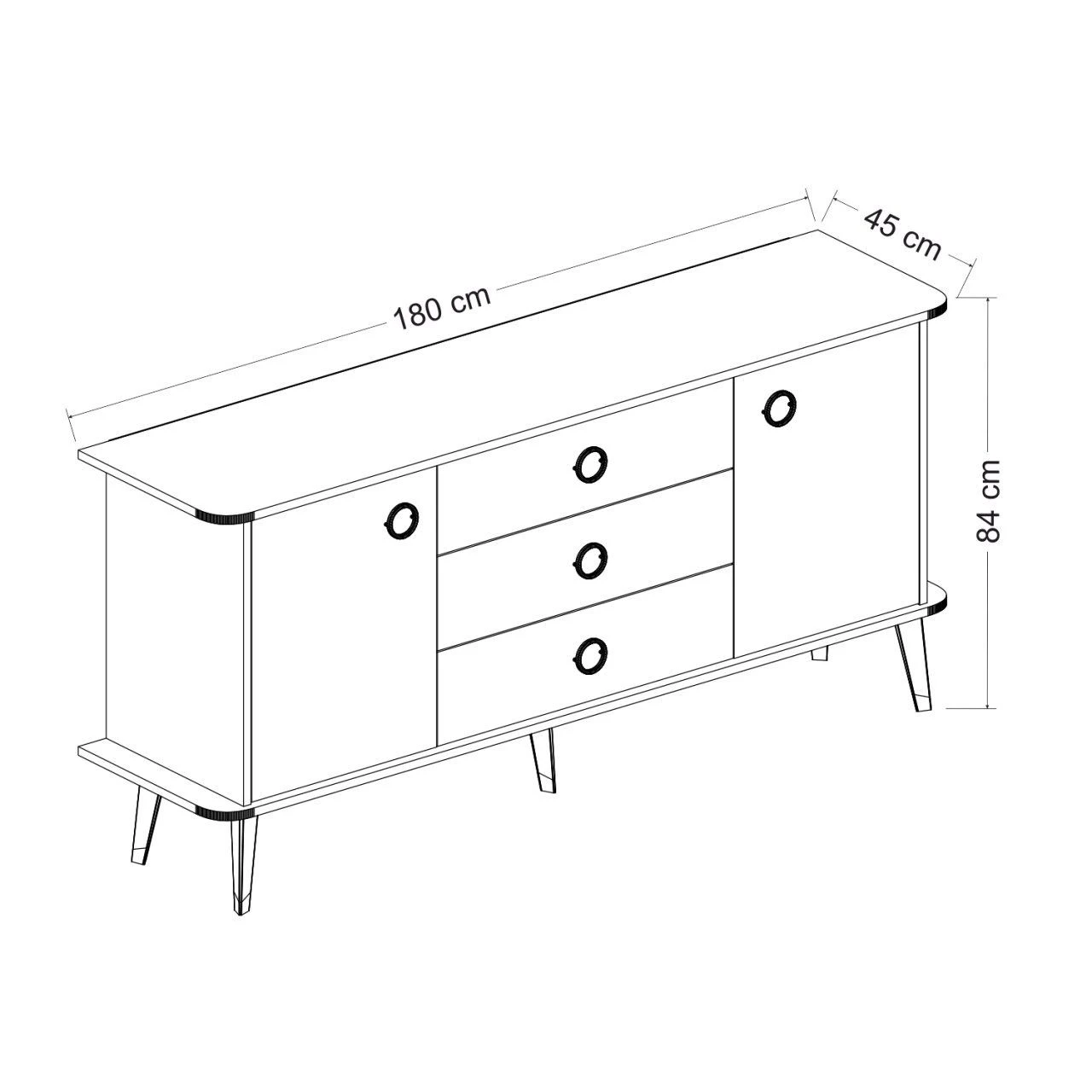 De Woody Fashion Console heeft een royale afmeting van 180 cm in de breedte, 84 cm in de hoogte en 45 cm in de diepte. Deze royale ruimte biedt een veelheid aan opbergmogelijkheden, waardoor het perfect is voor het organiseren van je spullen en het opgeruimd houden van je woonruimte.