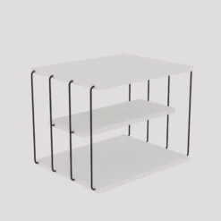 2-Tier Bijzettafel | 18mm | Melamine Gecoat | Metalen Frame | 50x40x34cm | Wit Zwart