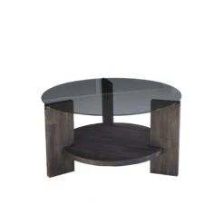 Locelso Salontafel | 100% Gehard Glas | Frame Van Pijnboomhout | Antraciet Donkerbruin