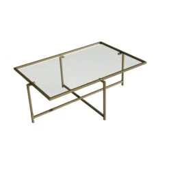 Locelso Salontafel | Gehard Glas | Metalen Frame | 83x40x83 Cm | Goudgeel