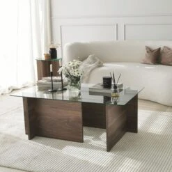Locelso Salontafel | 100% Gehard Glas, Grenen Massief Houten Frame | Fume