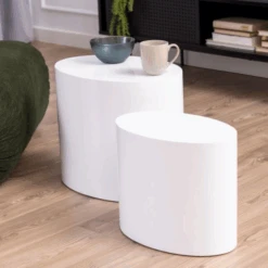 Houten Nesting Tables Set | 3 Stuks | Melamine Gecoat | Metalen Frame | Wit Antraciet Noten